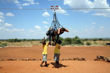 On corporate events participants are given sand bags to ‘bomb’ a target close to the end of the ride. After the dismount you get to watch the rest of the group as they take their rides. After a debriefing when you remember to breathe for the first time, riders are transported back to the Welcome Centre. Most people prefer to wind down at The Pilansberg Brewery Bar on their way back. Many people take videos of the ride and are welcome to submit them for posting on our main website.